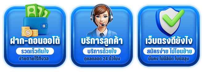 ตอบ : - มีคาสิโนออนไลน์ สล็อต บาคาร่า แทงบอล หวย และเกมส์พนันครบวงจร - ระบบฝาก-ถอนอัตโนมัติ 24 ชั่วโมง - มีโปรโมชั่นและเครดิตฟรีมากมาย - รองรับการเล่นผ่านมือถือทุกระบบ