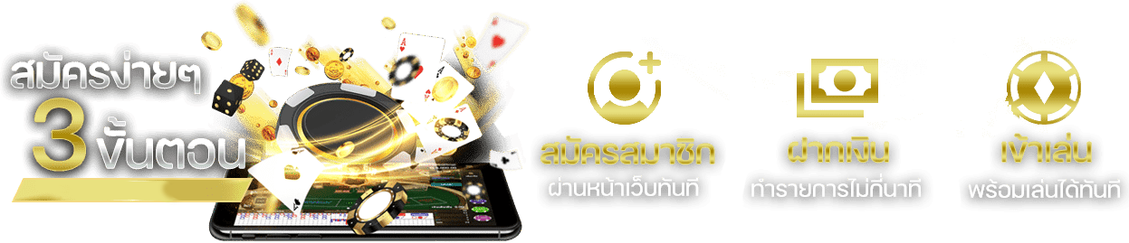 ตอบ : - เข้าเว็บไซต์หลัก กดปุ่มสมัครสมาชิก - กรอกข้อมูลส่วนตัวให้ครบถ้วน - ยืนยันเบอร์โทรศัพท์ - รับยูสเซอร์และรหัสผ่านทันที